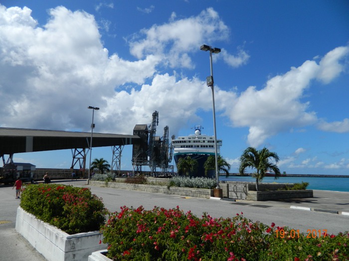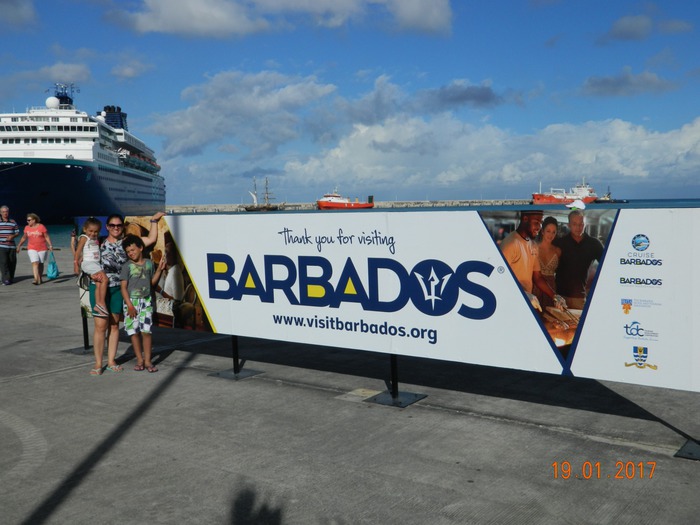 Eis que chegamos à terra da diva Rihanna e local de nascimento do rum! Enfim desembarcamos em Bridgetown, Barbados. Aquele mar azul é hipnotizante! No porto a água é muito limpa e transparente, digo isto porque, infelizmente, no porto do Rio de Janeiro, meu estado, a água é tão contaminada, que muitos países nem permitem que o lastro* da Baía de Guanabara seja despejado dentro dos seus limites marítimos.